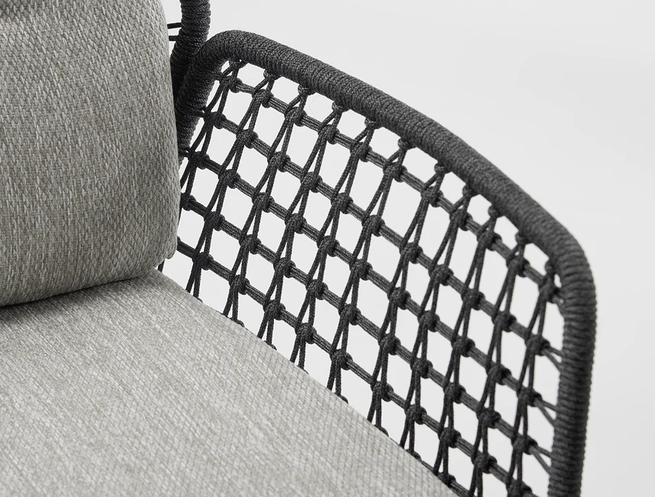 dort, wo alle fäden zusammenlaufen, steht meist ein weiches gartenmöbel von uns. denn unser material rope besteht aus vielen einzelnen, runden fäden mit kunststoffkern – diese sind, miteinander verwoben und verflochten, sehr stark und halten einiges an belastung aus. außerdem sehen sie wunderbar aus. fällt dir auch auf, wenn du die muster musterst, die aus den fäden entstehen. diese verknüpfung von ästhetik, komfort und robustheit ist wasserabweisend, uv-beständig und farbecht.